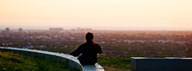 Man sting on the ledge in Baldwin Hills Scenic Overlook Park, Culver City, Los Angeles County, California, USA