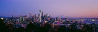 High angle view of a city at sunrise, Seattle, Mt Rainier, Washington State