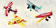 1940's style pin-up girl sitting on the wing of a Stearman biplane