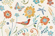 Festive Birds Panel I Linen