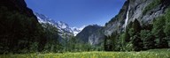 Waterfall in a forest, Staubbach Falls, Mt Jungfrau, Lauterbrunnen Valley, Bernese Oberland, Berne Canton, Switzerland