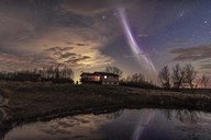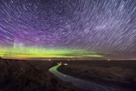 Circumpolar Star Trails and Aurora Over the Red Deer River, Alberta