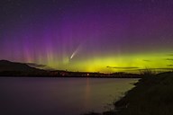 Comet NEOWISE and Aurora Over Waterton River, Alberta