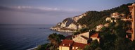 High angle view of a city near the sea, Ligurian Sea, Italian Rivera, Bergeggi, Liguria, Italy
