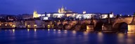 Bridge across a river lit up at night, Charles Bridge, Vltava River, Prague, Czech Republic