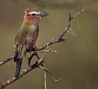 Kenya, Rufous-crowned roller bird on limb.
