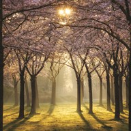 Cherry Trees at Sunrise