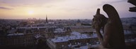 Chimera sculpture with a cityscape in the background, Galerie Des Chimeres, Notre Dame, Paris, Ile-De-France, France