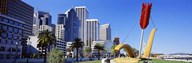 Low angle view of a sculpture in front of buildings, San Francisco, California, USA