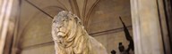 Germany, Munich, Lion sculpture in front of a building