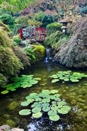 Red Bridge, Autumn Color, Butchard Gardens, Victoria, British Columbia, Canada