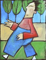 Man In Orange Shirt With Bird