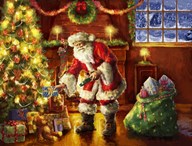 Santa at tree with present