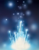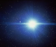 Stars with trails rising from bright white burst of light toward deep blue