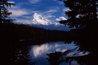 Reflection of a snow covered mountain in a lake, Mt Hood, Lost Lake, Mt. Hood National Forest, Hood River County, Oregon, USA