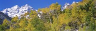 Forest with snowcapped mountains in the background, Maroon Bells, Aspen, Pitkin County, Colorado, USA