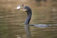Neotropic cormorant with fish in beak, Three Brothers River, Meeting of the Waters State Park, Pantanal Wetlands, Brazil