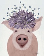 Pig and Lilac Flowers Book Print