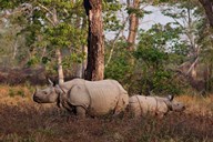 One-horned Rhinoceros and young, Kaziranga National Park, India