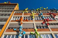 Facade of a Coroful building, Medienhafen, Dusseldorf, North Rhine Westphalia, Germany