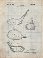 Metallic Golf Club Head Patent - Antique Grid Parchment