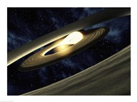 Saturn and its Satellites. Clockwise from right: Tethys, Mimas, Encleladus, Dione, Rhea & Titan