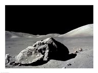 Astronaut standing near a rock on the moon, Apollo 17
