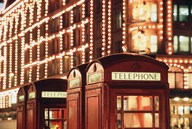 Lit Telephone booth at Harrods, Knightsbridge, London, England