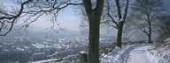 Trees along a snow covered road, Freiburg Im Breisgau, Breisgau, Baden-Wurttemberg, Germany
