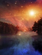 Night Forest Lake Sunrise Or Sunset