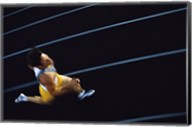 High angle view of a young man running on a running track