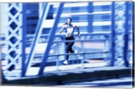 Low section view of a person running on blue