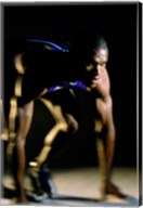 Close-up of a track runner in the starting position
