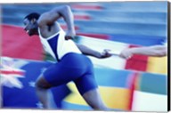 Male runner holding up a relay baton