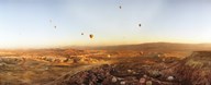 Hot air balloons crossing a plateau, Cappadocia, Central Anatolia Region, Turkey