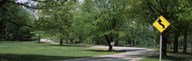 Double bend sign in a park, Letchworth State Park, New York State, USA