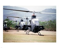 Three AH-1 Cobra gunship helicopters