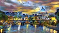 Vatican City Saint Peter Basilica and bridge by night