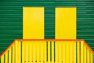 Yellow and Green wooden cottages, Muizenberg Resort, Cape Town, South Africa