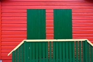 Red and Green wooden cottages, Muizenberg Resort, Cape Town, South Africa