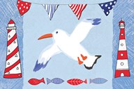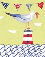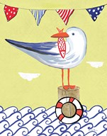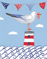 Coastal Bird I Flags on Blue
