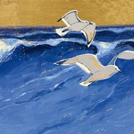 Seagulls with Gold Sky II