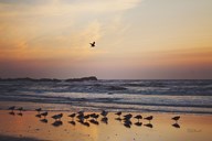 Seagulls with Gold Sky
