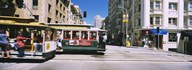 Two cable cars on a road, Downtown, San Francisco, California, USA