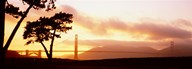 Silhouette of trees at sunset, Golden Gate Bridge, San Francisco, California, USA
