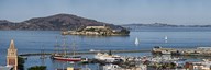 Buildings in a city with Alcatraz Island in San Francisco Bay, San Francisco, California, USA