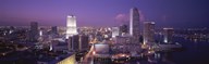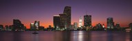 Buildings lit up at dusk, Biscayne Bay, Miami, Miami-Dade county, Florida, USA
