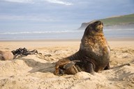 Sea lions on beach, Catlins, New Zealand