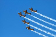 Aerobatic display by North American Harvards, or T-6 Texans, or SNJ, Airshow