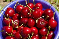 Bucket of cherries, Cromwell, Central Otago, South Island, New Zealand